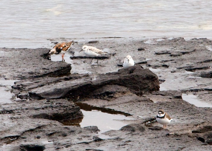 Ruddy Turnstone, Sanderlings, Semipalmated Plover
